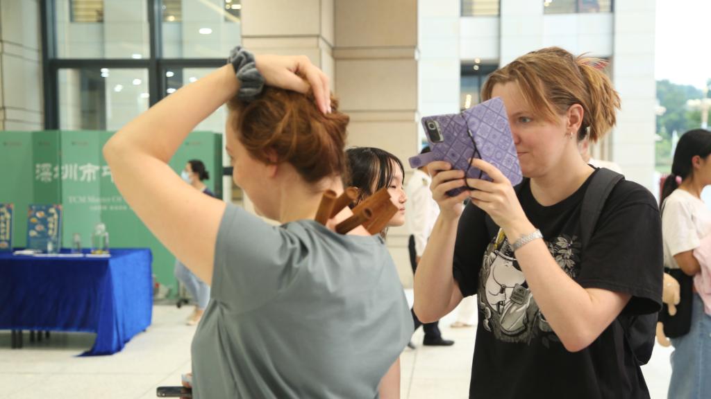同時(shí),在中方師生的幫助下,深北莫的外籍教師也對(duì)體驗(yàn)活動(dòng)表示出強(qiáng)烈的興趣并積極參與其中。她們表示,在莫斯科也設(shè)有中醫(yī)診所,但數(shù)量較少。對(duì)于此次活動(dòng),她們都覺得非常有趣,希望學(xué)??梢栽俅闻e辦這樣的活動(dòng),增進(jìn)對(duì)于中醫(yī)文化的了解。