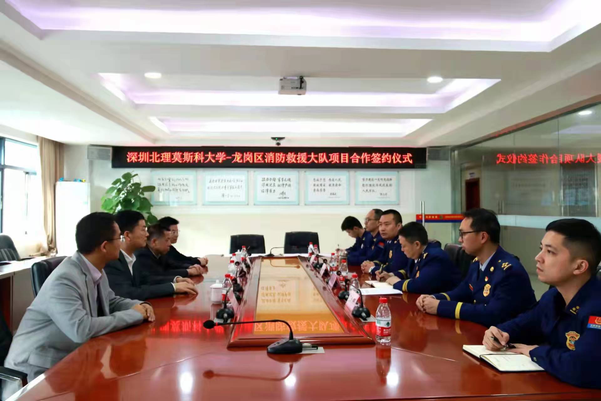 建設粵港澳大灣區和支持深圳建設中國特色社會主義先行示范區是習近平總書記親自謀劃、親自部署、親自推動的重大國家戰略,著眼的是國家改革開放大局、“一國兩制”偉大實踐和社會主義現代化強國建設全局。為響應深圳建設中國特色社會主義先行示范區和粵港澳大灣區建設兩大國家戰略需求,深圳市消防救援支隊與深圳北理莫斯科大學于2021年10月簽訂戰略框架合作協議,圍繞建設合作創新平臺、推動產學研成果轉化、促進人才隊伍建設等方面深化合作,并成立聯合工作站(科創實驗室)。聯合工作站(科創實驗室)辦公室分別設在深圳市龍崗區消防救援大隊和深圳北理莫斯科大學條件保障部,深圳市龍崗區消防救援大隊冉松松大隊長和深圳北理莫斯科大學條件保障部彭巨光部長牽頭組織雙方多名成員反復溝通、深入研究,于2022年1月26日簽訂第一個技術合作協議。