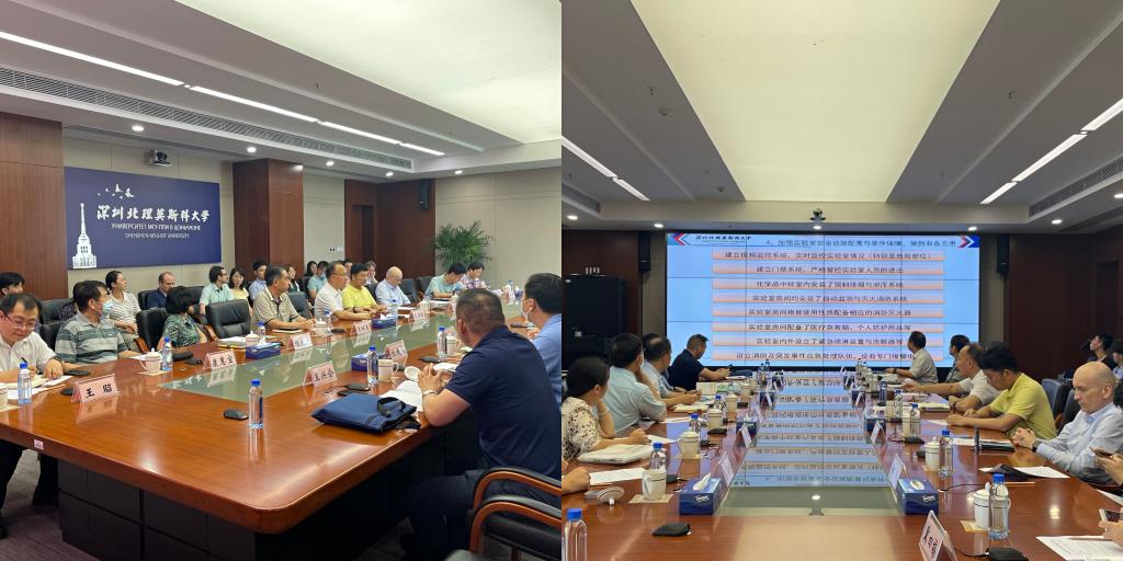 為深入貫徹落實黨中央、國務(wù)院關(guān)于安全生產(chǎn)工作的決策部署和黨的十九屆六中全會精神,落實《教育部辦公廳關(guān)于開展加強(qiáng)高校實驗室安全專項行動的通知》(教科信廳函〔2021〕38號)和《教育部辦公廳關(guān)于組織開展2022年高校實驗室安全檢查工作的通知》,2022年6月22日下午,廣東省教育廳裝備中心副主任鄭堯奎與指導(dǎo)專家組一行,對學(xué)校實驗室安全工作進(jìn)行了專項檢查。深圳北理莫斯科大學(xué)黨委書記、副校長朱迪儉博士,條件保障部部長彭巨光教授、條件保障部資產(chǎn)與實驗室工作組組長王昭博士、康惠寶教授,材料系、生物系、工程系系主任(包括第一副主任)與中俄師生代表等參加檢查。