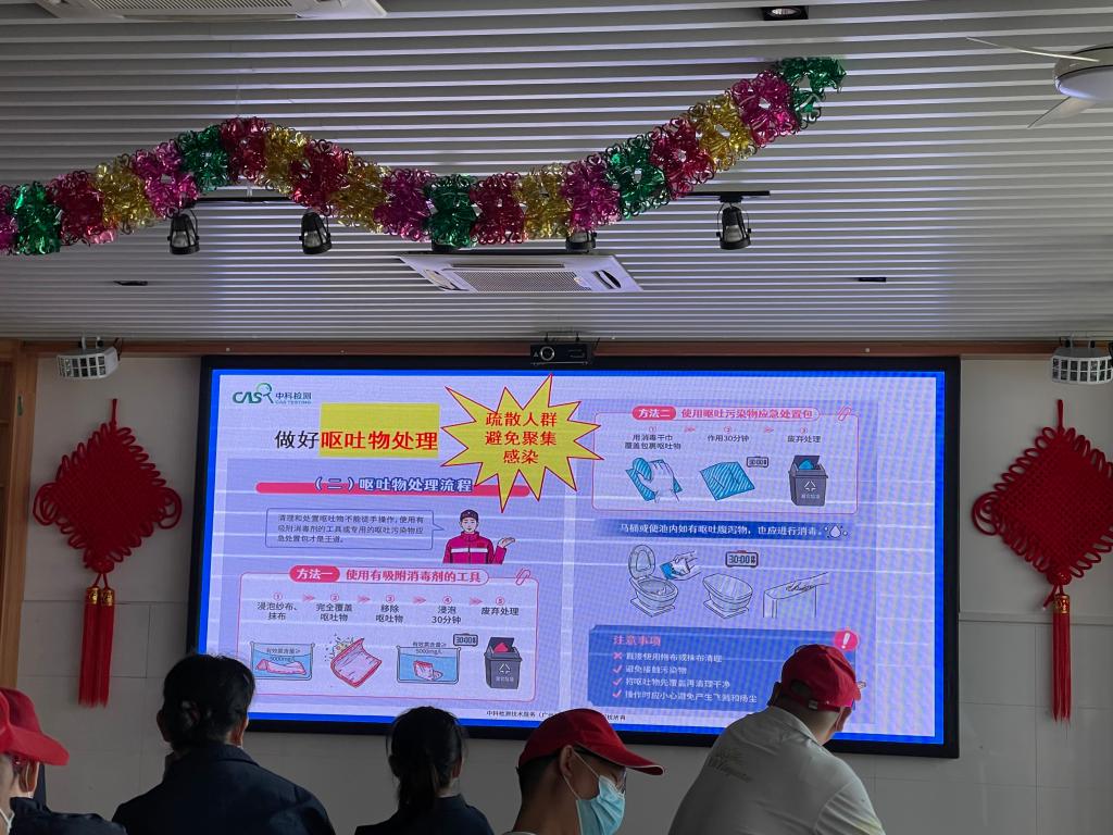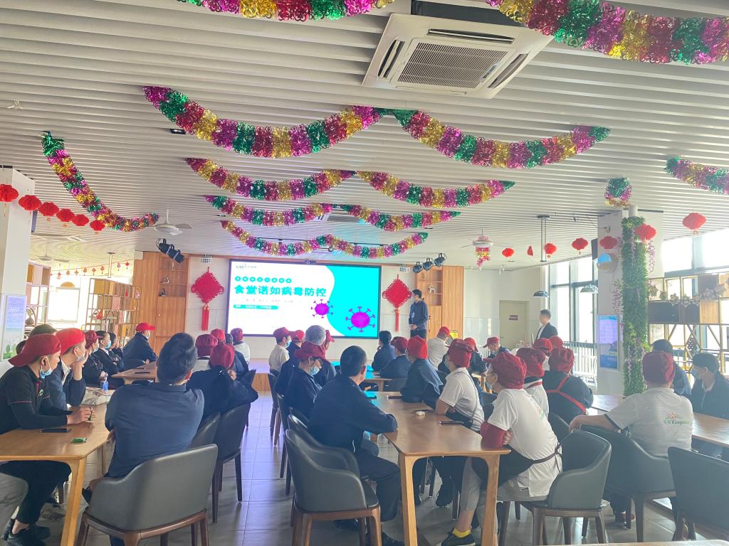 2月23日下午培訓內容結合學校食堂實際的運行情況,通過視頻、圖像等方式,生動而系統的向食堂員工們介紹諾如病毒的傳播特點及危害性,并科普如何有效防控諾如病毒以及諾如病毒爆發后如何有效應對。通過此次培訓提高食堂全體從業人員的諾如病毒防控意識,讓他們科學地學習如何應急處置諾如病毒引發的嘔吐、腹瀉。
