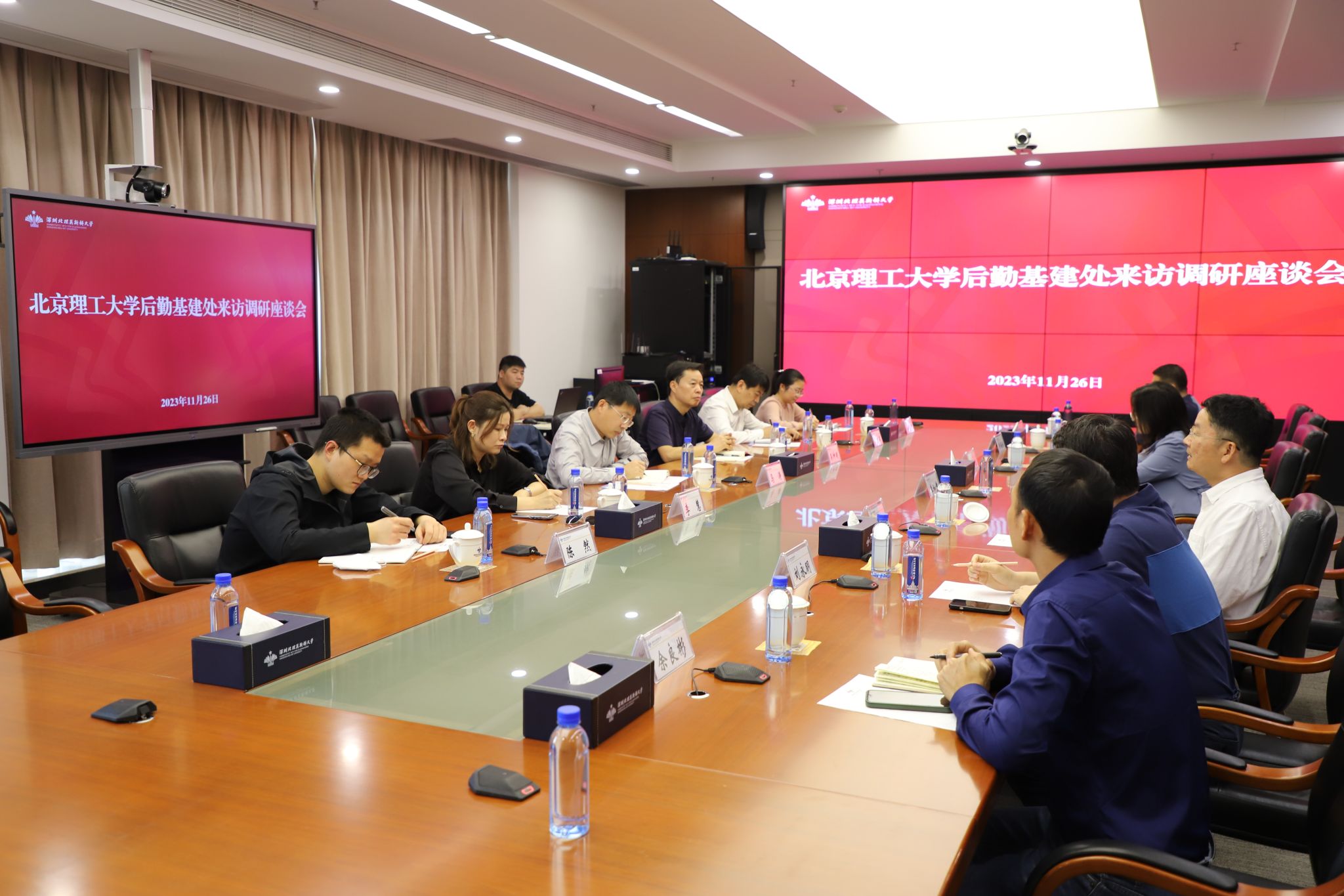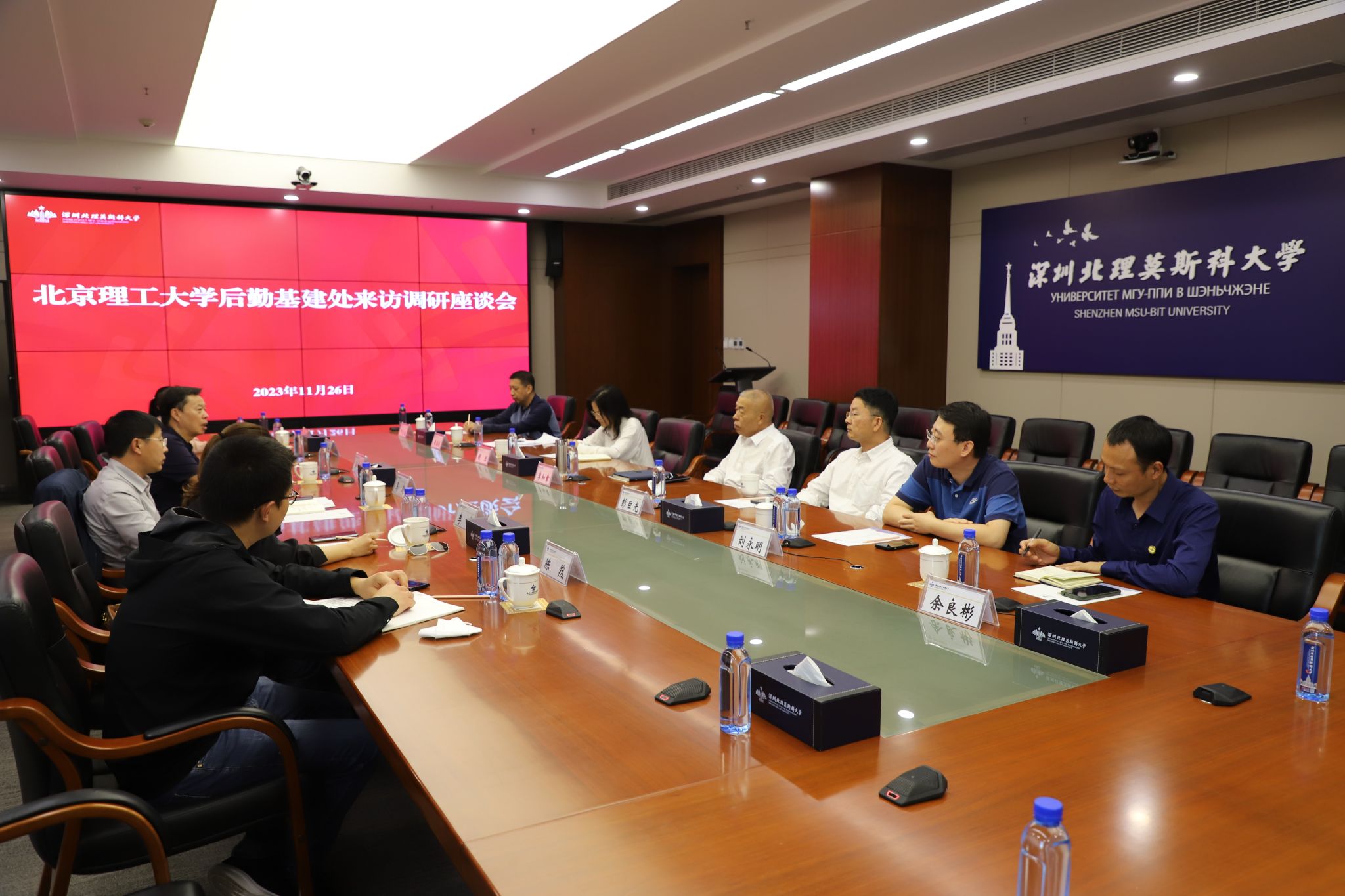 11月26日下午,北京理工大學后勤基建處馬濤副處長、吳坤明副處長一行來到深圳北理莫斯科大學調研。學校校長李和章教授,條件保障部部長彭巨光教授、胡旦、劉永明副部長等部門相關人員陪同調研。