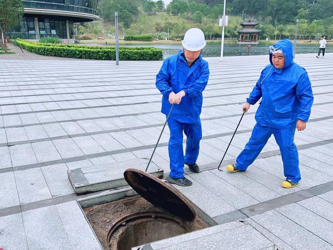 場景二、同時,為加快排水速度,演練人員還打開后廣場湖邊附近的一個排水井,增加了排水通道,確保積水能夠迅速排出。這一舉措顯著提升了校園排水系統的應對能力。