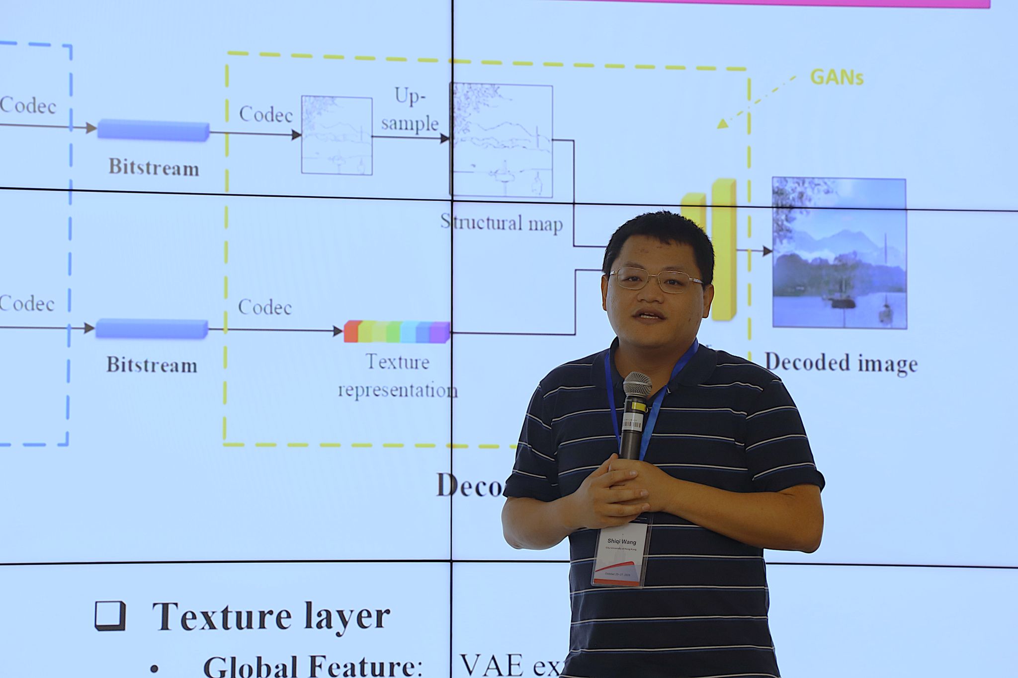 王詩淇博士的特邀報告題目是“Video Coding and Quality Assessment Based on Generative Models”,分享了如何實現更高效的視頻基于大語言強大生成能力的編碼與質量評估視覺模型,并介紹了他們在低復雜度生成人臉方面的標準化工作視頻編碼,進一步討論壓縮人類、自然和人工智能生成的可能性視頻內容。