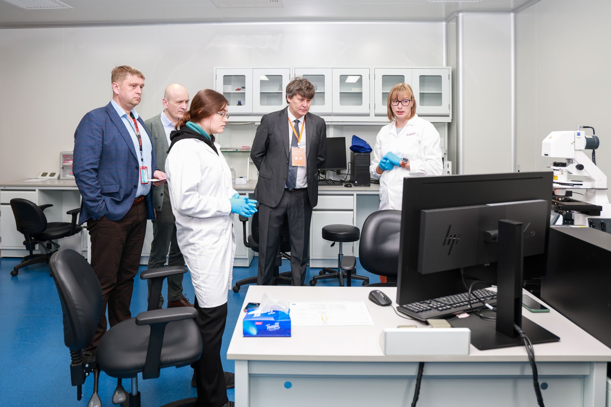 在科研事務部及相關院系領導的陪同下,代表團還參觀了深北莫實驗室及實驗儀器設備。代表團對實驗室內的先進設備表示了極大的興趣,并對深北莫實驗室的高水平研究工作給予了高度評價。