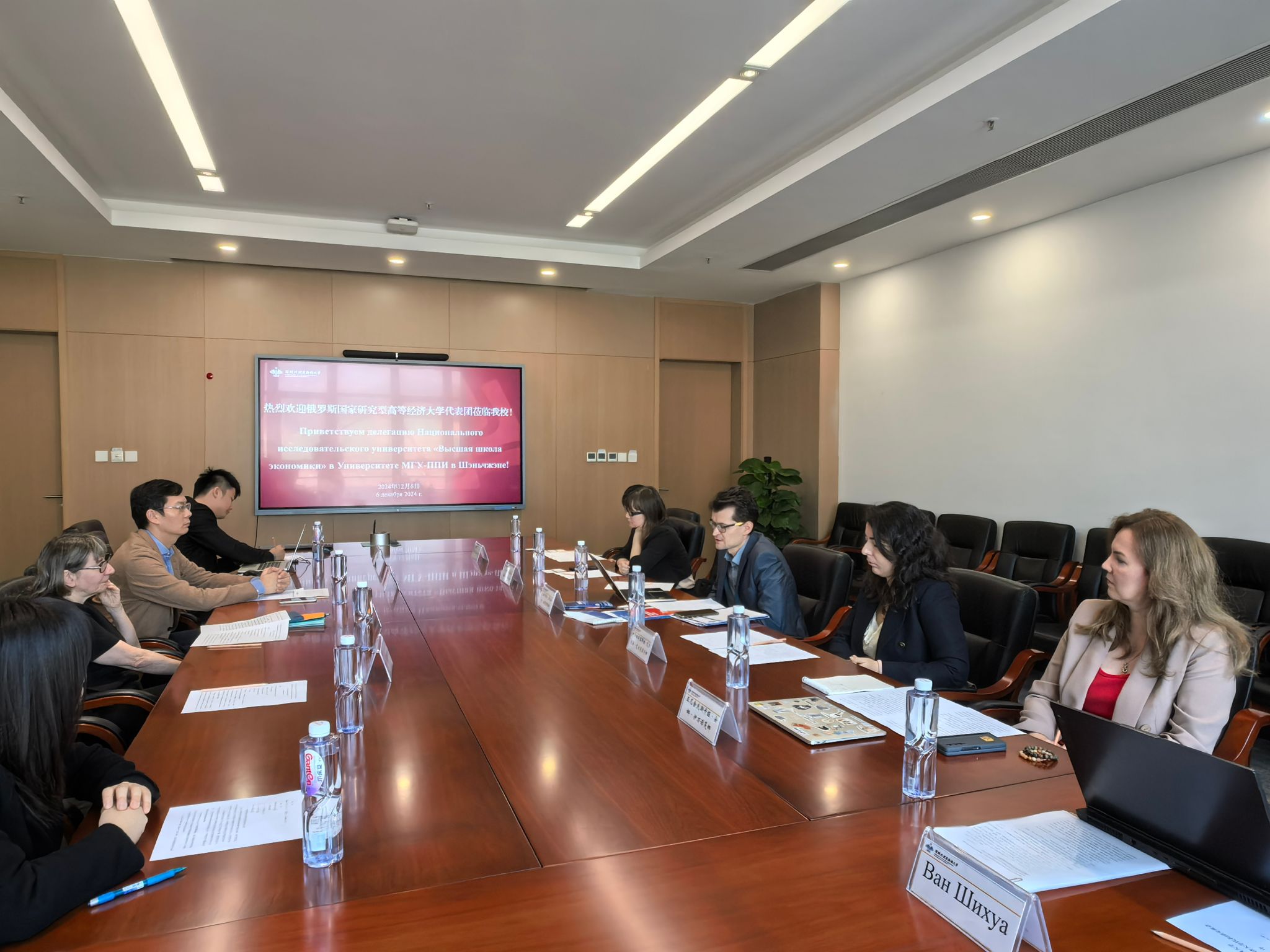 深圳北理莫斯科大學經濟系主任伊·弗·尼基圖什金娜、歐亞研究中心主任米·弗·卡爾波夫、經濟系教師白汶松、國際學術交流合作部的教師代表等熱情接待代表團并出席座談會。