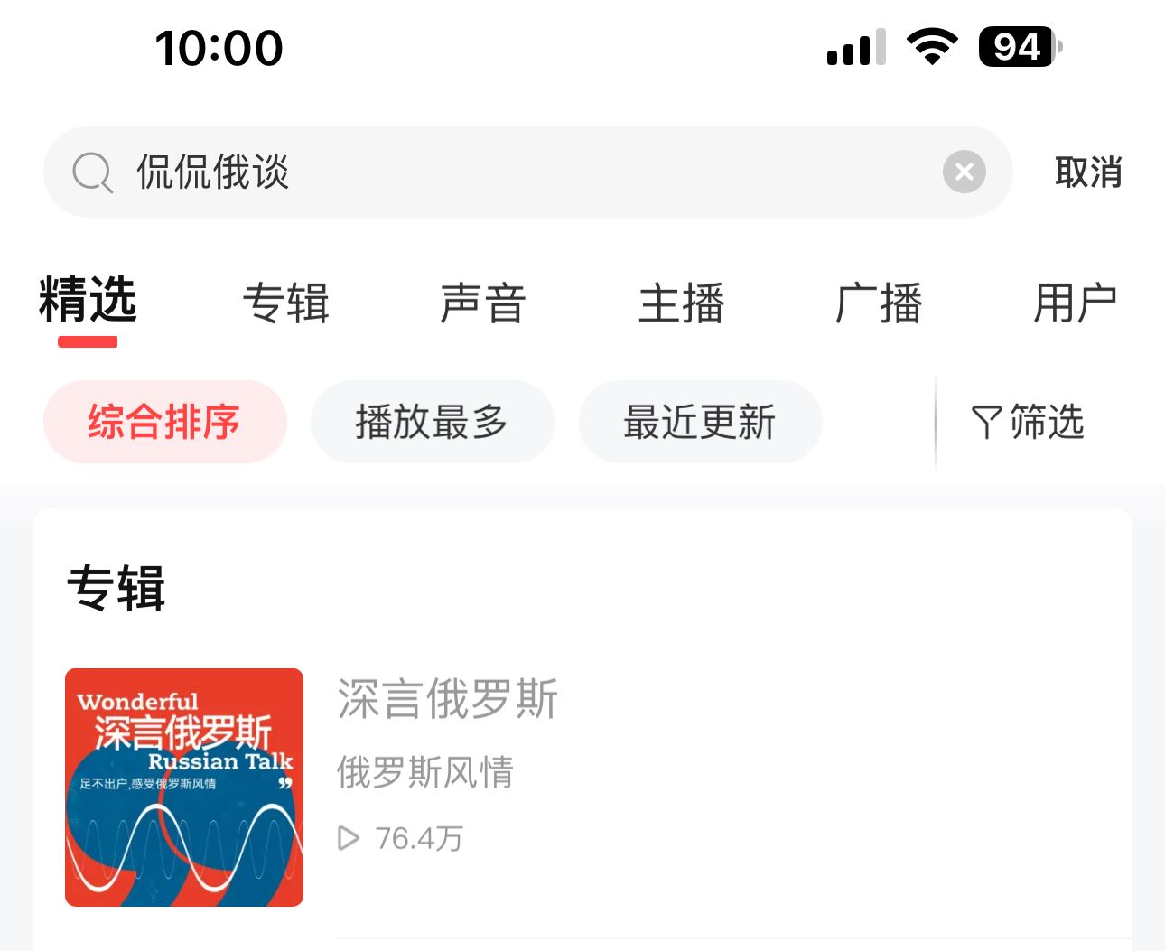 登陸喜馬拉雅APP,在搜索欄搜索“侃侃俄談”進(jìn)行收聽。