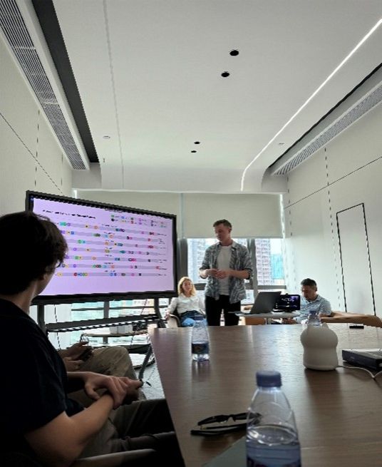 獅備科技深圳總部負責人Konstantin Che詳細介紹了公司在智能制造、數字貿易等核心業務板塊的全球布局,重點解讀了公司在中國市場的本土化運營策略與創新實踐。市場經理伊琳娜和項目經理弗拉德通過具體案例,生動地展示了公司核心產品線及中俄經貿合作的特點。