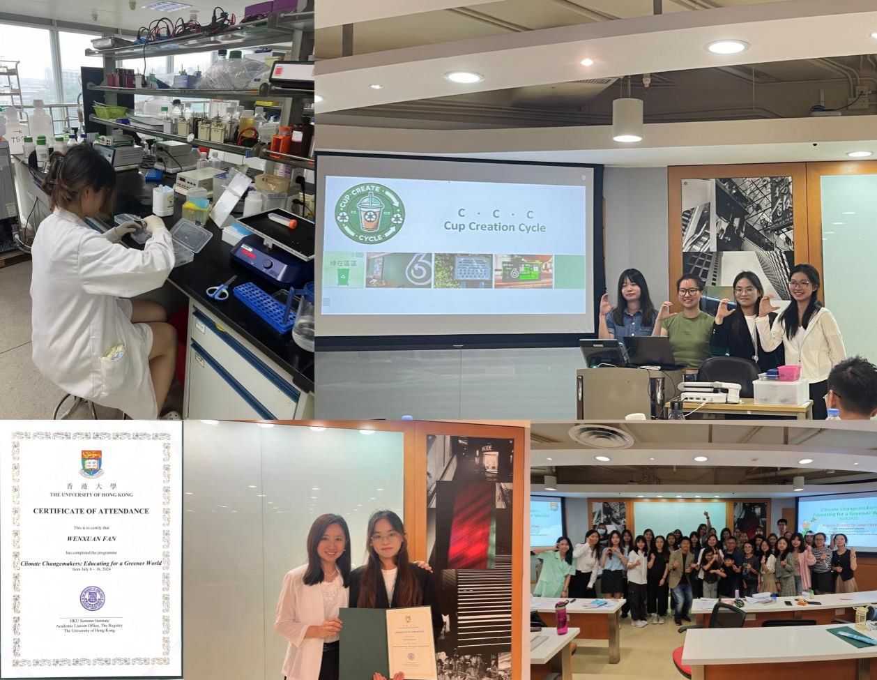 2024年暑假期間,她作為訪問學生在暨南大學生物醫學轉化研究院學習,在老師和師兄師姐的幫助下提升了實驗技術能力和專業理論能力。訪問結束后,又參加香港大學暑期學院“Climate Changemakers: Educating for a greener world”項目,對生物熱門專業ESG領域進行全新探索。