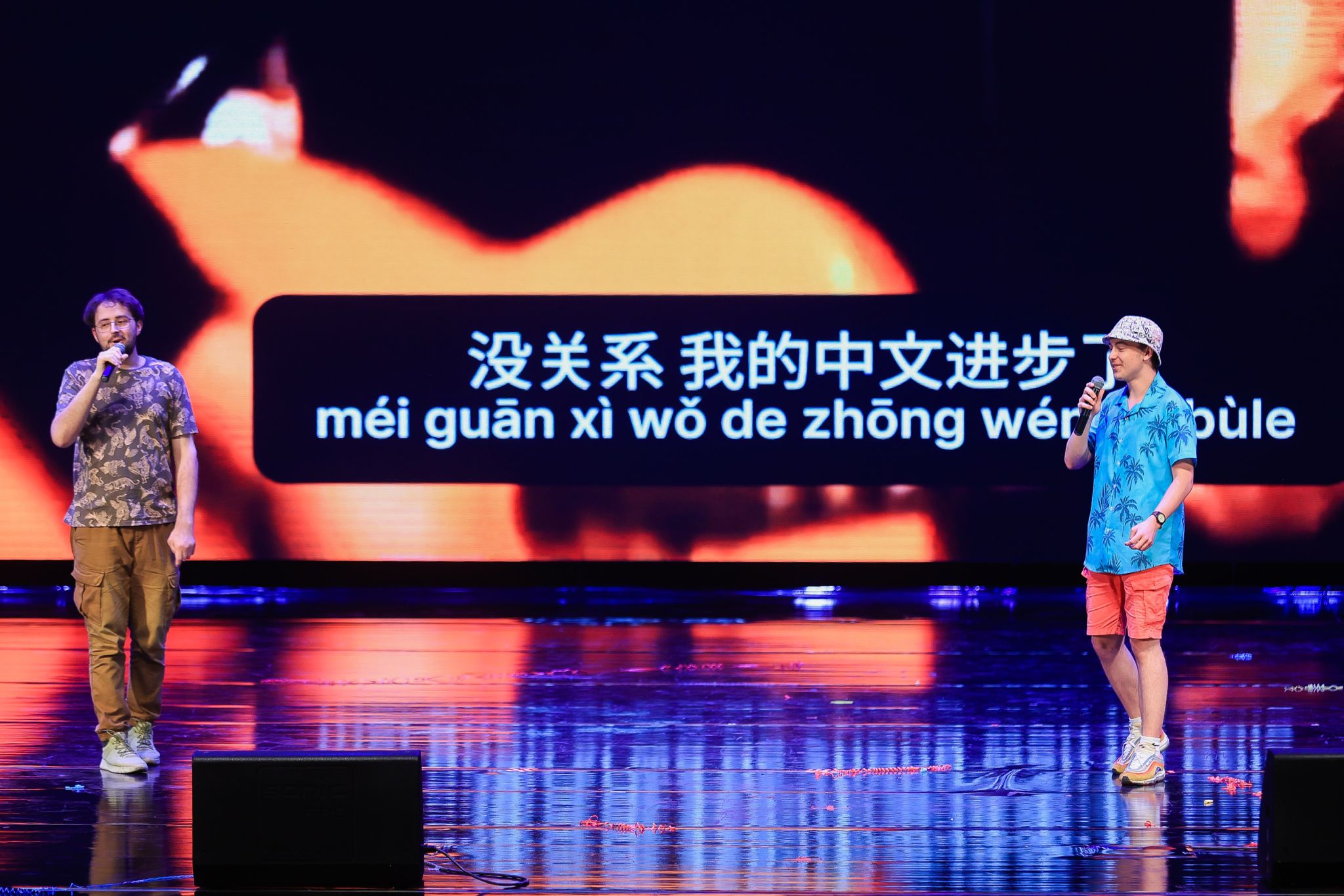 國際學生們還積極探索創新節目形式,將影視配音《城南舊事》融合合唱《送別》,再現百年前老北京風情;《一字一世界》書法表演與演講結合,現場書寫“和而不同”,并向觀眾分享“和”字的深厚意蘊;《你是人間的四月天》的朗誦與舞蹈相輔相成,別具一格。