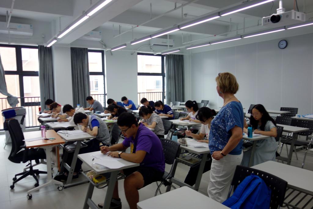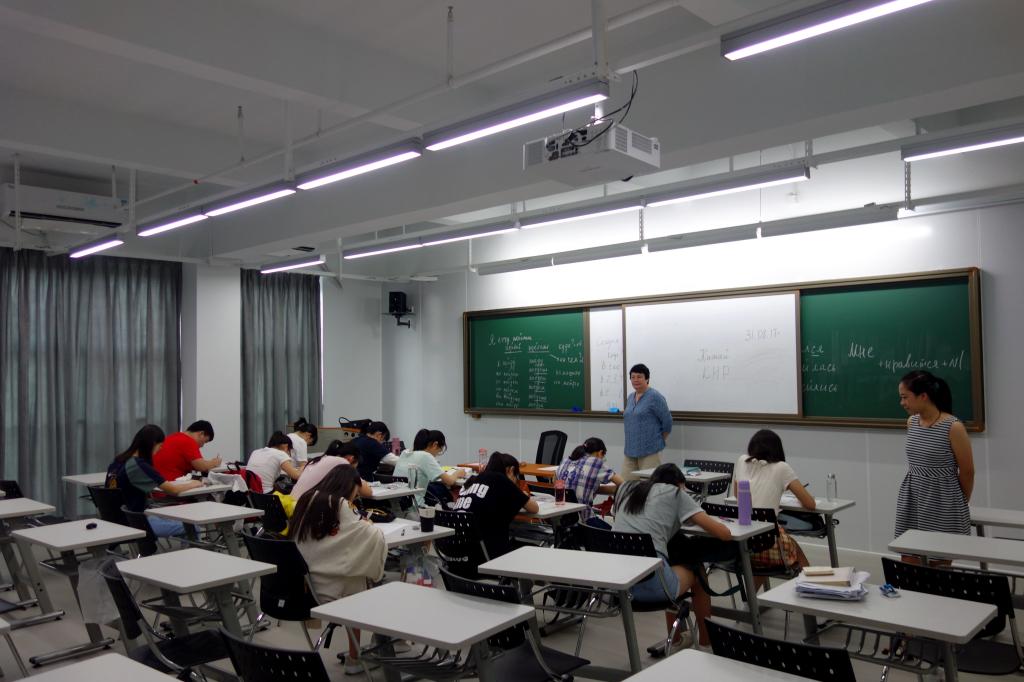8月31日上午,俄語(yǔ)語(yǔ)言中心舉行了第一次俄語(yǔ)階段性測(cè)試,參加俄語(yǔ)強(qiáng)化培訓(xùn)的中國(guó)籍本科生全部參加了本次考試。此次考試包括筆試和口試兩部分。筆試內(nèi)容涵蓋了詞匯、語(yǔ)法、閱讀和寫作,時(shí)間為60分鐘;口試內(nèi)容涉及“我的家庭”、“我的業(yè)余時(shí)間”等6個(gè)話題,時(shí)間為10-15分鐘??碱}緊密結(jié)合本階段的教學(xué)內(nèi)容。考試期間,學(xué)生安靜、沉著地答題,考場(chǎng)秩序井然。