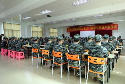 10月9日,我校在廣州民兵預備役訓練基地舉行2017級本科生軍訓開訓儀式。學校黨委書記陸萬偉、廣州民兵預備役訓練基地大隊長曾偉、學校有關部門負責人、北京理工大學學生工作處張楊、承訓教官、以及2017級本科生軍訓工作辦公室全體成員參加開訓儀式。開訓儀式由2017級本科生軍訓工作辦公室主任韓寶玲主持。