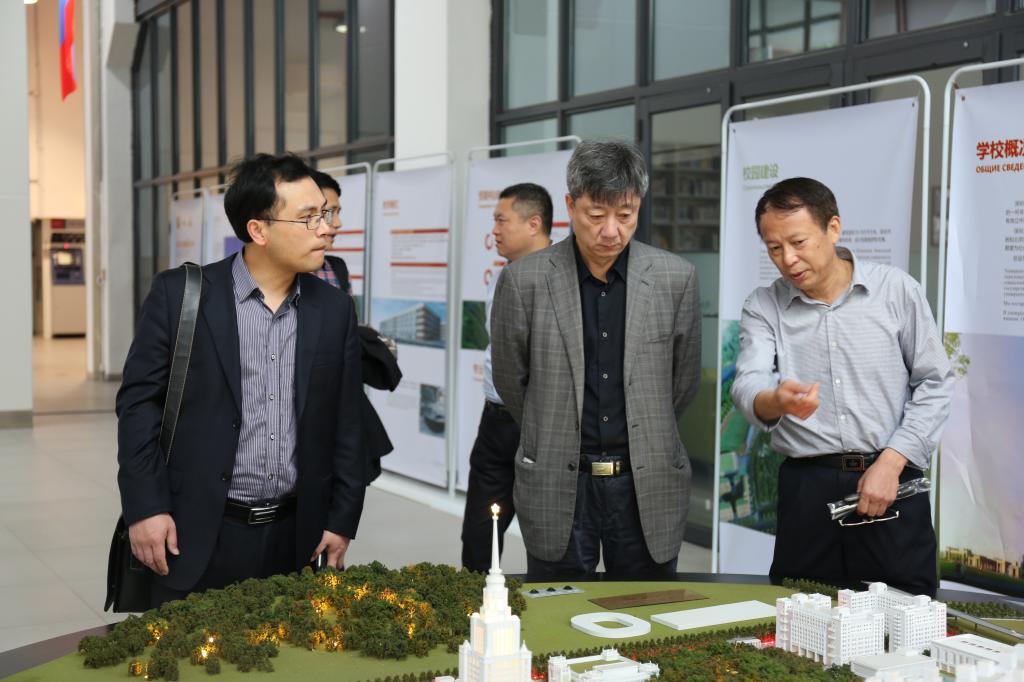 在過渡校區會議室,雙方進行了座談。張建中副校長主持座談會,趙平校長和有關部門負責人出席了會議。趙平校長對胡主任一行表示歡迎,并在會上介紹了我校發展歷史及學校辦學理念和特色。雙方就中外合作辦學及異地辦學所涉及的學科布局、師資配置、財務支撐等話題展開討論和交流。