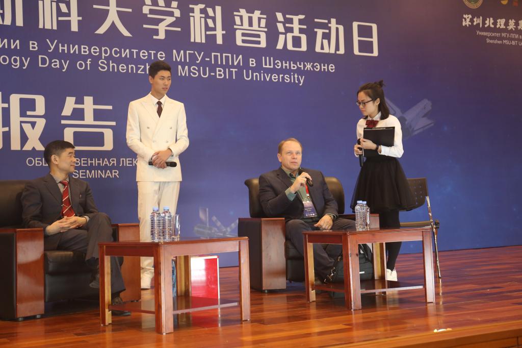 我校邀請參加此次會議的中國航天員劉伯明和俄羅斯航天員奧列格·科托夫來到深圳北理莫斯科大學校園與師生見面交流,分享航天知識和經驗,讓學生和航天員直接對話,激發我校學生對航天科學的興趣,普及航天領域的基礎科學知識,同時提高學生的俄語語言應用能力。