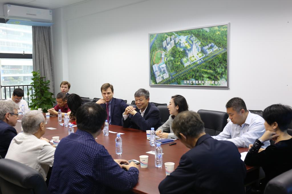 參觀完兩個校區后,校領導與俄羅斯科學家以及中方企業家在會議室進行座談。趙平校長介紹了我校的總體情況、辦學特色以及招生情況,并表示我校將致力于高水平的研究型大學建設,大力開展科學研究和科技成果轉化。希望借助中俄科技成果轉化(南方)中心在人才培養、科學研究、招生宣傳等方面進行有效的合作。塔拉索夫副校長也介紹了國際學生的招生規則及考試情況。