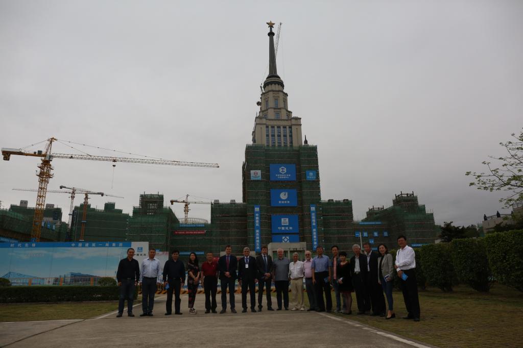 趙平校長、塔拉索夫副校長、張建中副校長以及學校部門負責人熱情接待來訪客人。俄羅斯科學家們首先參觀了永久校區的校園建設工地,隨后來到在過渡校區沙盤前,由張建中副校長為考察團成員詳細介紹我校永久校區的建設規劃情況。