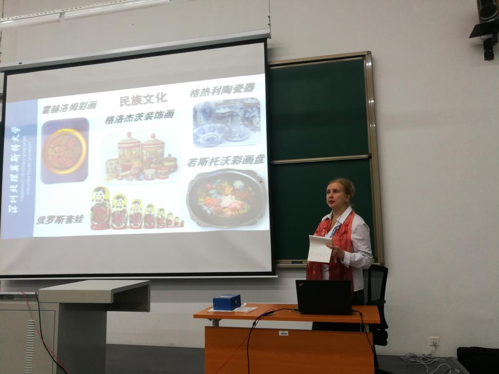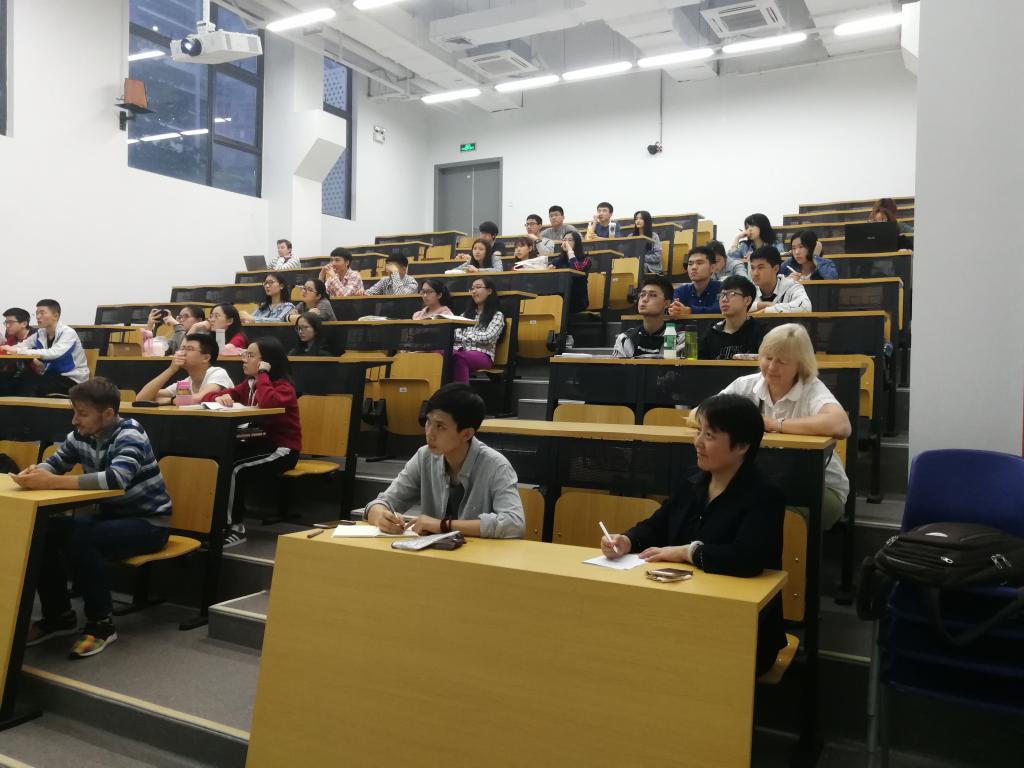 4月17日晚,學校學術事務部邀請莫斯科大學語言系副教授依列娜(Elena V. Polischuk)舉辦了一場以俄羅斯的文化為主題的講座,部分師生參加了講座。依列娜副教授使用英語進行演講,她向在座的同學們詳細介紹了俄羅斯的自然資源、民族文化、藝術、文學、音樂、科學、城市等概況,促進同學們更加深入了解俄羅斯的文化。
