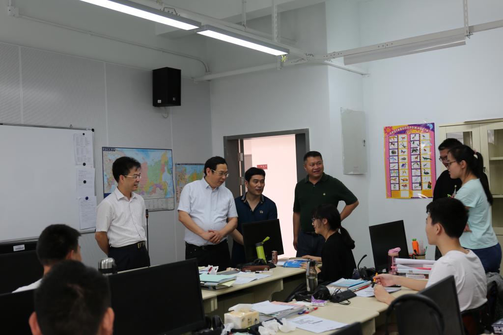陸萬偉書記向楊曉春副主任等領導匯報了我校發展建設情況,特別是我校在中俄兩國人文合作領域取得的階段性成果,希望教育部中外人文交流中心在宣傳和招生等方面給與我校更多的支持和幫助。