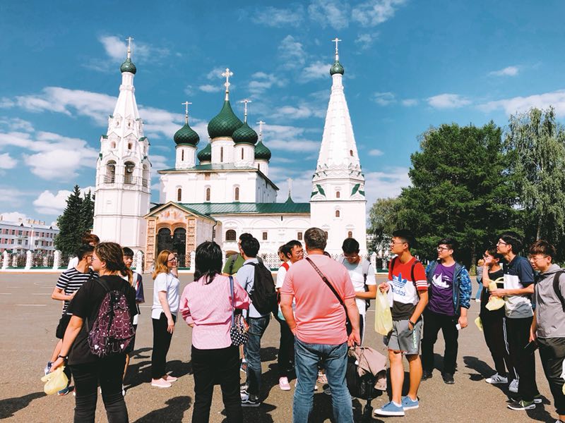2018年7月22日,我校夏令營同學從莫斯科乘火車前往俄羅斯古城雅羅斯拉夫爾參觀學習。雅羅斯拉夫爾始建于1010年,位于俄羅斯第一大河流伏爾加河上游,沿伏爾加河岸延伸30公里,沿岸風景美麗如畫,有著“俄羅斯的佛羅倫薩”的美譽。雅羅斯拉夫爾的建筑極具自己的特色,市內名勝古跡以17世紀建造的古教堂為多。