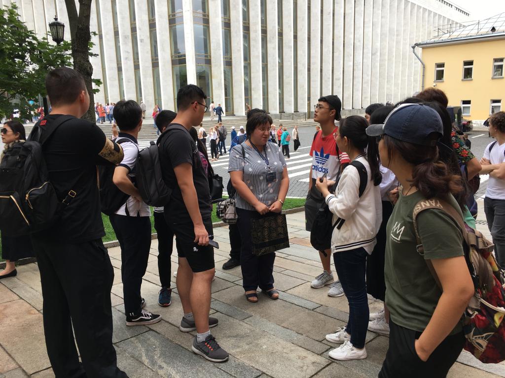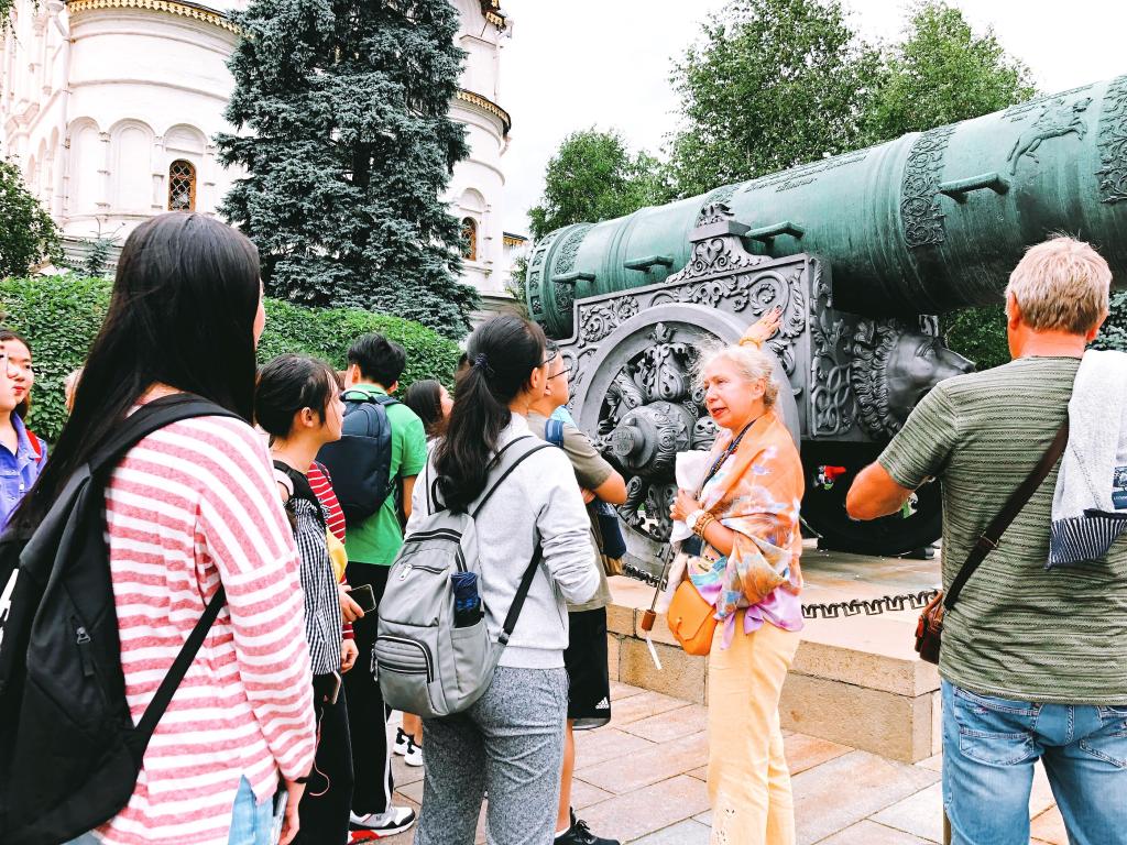 7月24日,我校夏令營(yíng)活動(dòng)進(jìn)入第五日,學(xué)生們的學(xué)習(xí)狀態(tài)已漸入佳境。今天的俄語(yǔ)課主題是《俄羅斯歷史主要事件》。課后,同學(xué)們一同前往莫斯科市中心參觀克里姆林宮。從13世紀(jì)起克里姆林宮就與俄羅斯所有重大歷史政治事件有關(guān)。它是俄國(guó)歷代帝王的宮殿(目前是俄羅斯總統(tǒng)辦公所在地,俄羅斯國(guó)家形象標(biāo)志),是俄羅斯民族最負(fù)盛名的歷史豐碑,也是全世界建筑中最美麗的作品之一。同學(xué)們?cè)诙砹_斯老師和導(dǎo)游的帶領(lǐng)下,走進(jìn)克里姆林宮,感受它那高大堅(jiān)固的圍墻、壯觀的塔樓和鐘樓,以及氣宇軒昂的建筑,聽(tīng)導(dǎo)游一一講解,參觀炮王、鐘王和圣母升天大教堂等。切身實(shí)地感受和了解俄羅斯的歷史文化。