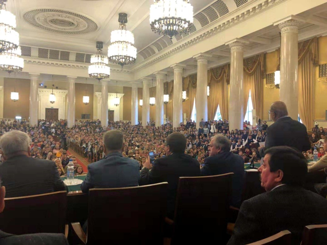 擁有2千個(gè)座位的大學(xué)禮堂座無(wú)虛席,莫斯科大學(xué)校長(zhǎng)薩多夫尼奇院士在大會(huì)上隆重推介深圳北理莫斯科大學(xué),并強(qiáng)調(diào)指出深圳北理莫斯科大學(xué)是莫斯科大學(xué)國(guó)際合作的主要項(xiàng)目之一。