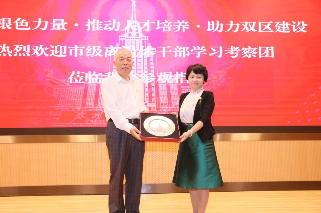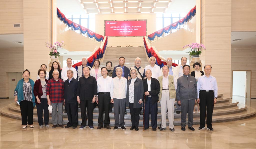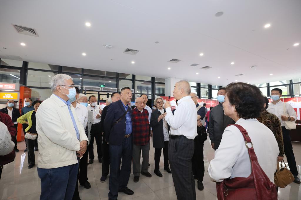 考察團首先在校領導的陪同下游覽了深北莫校園,依次參觀了學校校史館、百年留蘇展、俄羅斯油畫展,并考察了學校主樓、教學樓、圖書館,以及師生生活區。李和章校長、朱迪儉書記向退休干部詳細講解學校主體建筑、區域規劃、以及展覽信息。市級退休干部紛紛贊嘆學校的校園環境及辦學成績,表示將廣泛宣傳,助力學校發展。
