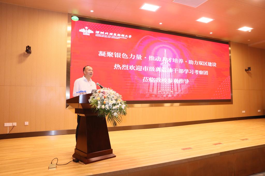 11月2日,近70位深圳市級離退休干部及家屬到深圳北理莫斯科大學參觀考察。深圳市機關事務管理局局長吳晶帶隊考察,深圳北理莫斯科大學校長李和章,黨委書記、副校長朱迪儉,第一副校長謝·米·沙赫賴,黨委副書記、紀委書記陳超峰,以及學校相關部門負責人陪同考察團參觀校園并出席座談會。