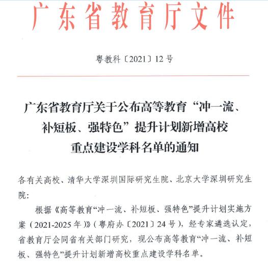 10月14日,廣東省教育廳公布高等教育“沖一流、補短板、強特色”提升計劃新增高校重點建設學科名單。深圳北理莫斯科大學數學、材料科學與工程、生物學、應用經濟學4個學科入選。