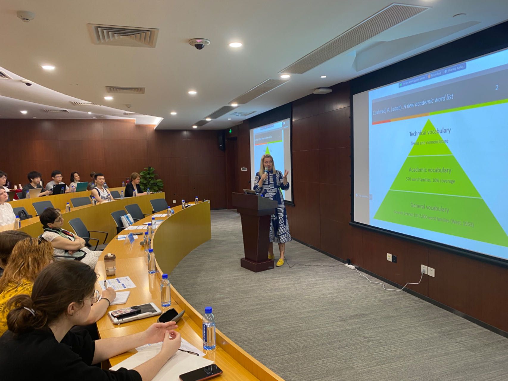 舍維爾佳耶娃·利利婭教授于會議第二天作大會主旨發(fā)言,她的演講題為《學術(shù)詞匯表:二十年來對生物詞匯語料庫分析及其課堂意義的研究和應(yīng)用》。舍維爾佳耶娃教授的研究成果包括編制了一系列生命科學英語教科書,在過去的四年里,這些教科書作為學校各院系的授課教材。