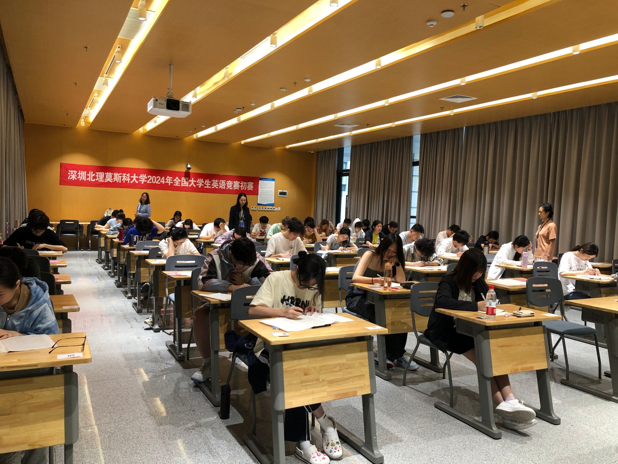 為全面提高深北莫學(xué)生的英語綜合運用能力,激發(fā)廣大學(xué)生學(xué)習(xí)英語的積極性,推動英語教學(xué)質(zhì)量上一個新臺階,深北莫英語中心協(xié)辦了深圳北理莫斯科大學(xué)2024年全國大學(xué)生英語競賽(National English Competition for College Students,簡稱NECCS)C類(非英語專業(yè)本科生)初賽。4月21日,深圳北理莫斯科大學(xué)2024年全國大學(xué)生英語競賽初賽在深北莫校園舉行,共計160名中國籍本科生報名參加,通過2小時的筆試,同學(xué)們展示了豐富的英語知識儲備和扎實的語言基礎(chǔ),彰顯著個人的風(fēng)采與才華。經(jīng)過緊張而有序的試卷評閱,評選出全國C類一等獎暨廣東賽區(qū)決賽選手1名、全國C類二等獎5名以及全國C類三等獎8名。最終,趙欣語同學(xué)代表我校參加廣東賽區(qū)決賽,并在千名選手中脫穎而出,一舉奪得特等獎的優(yōu)異成績。