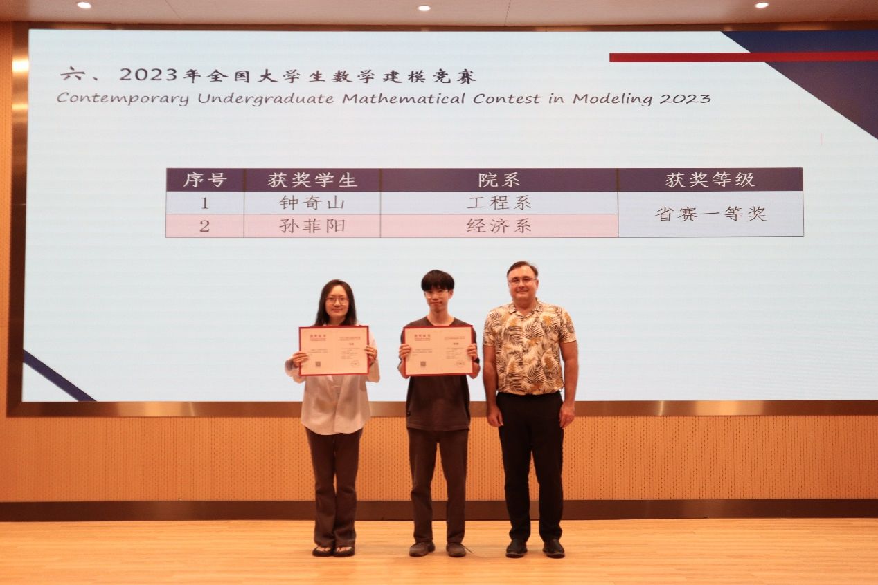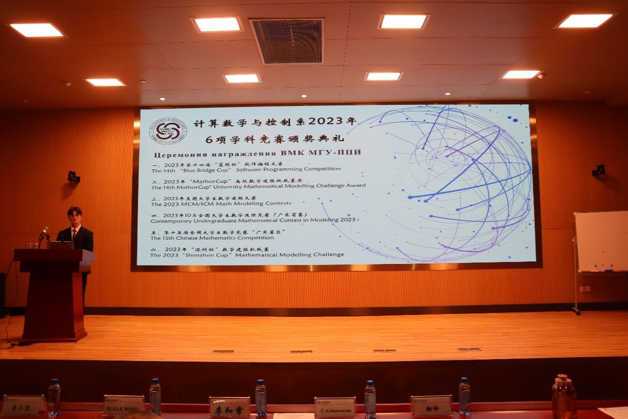 5月26日下午,由深圳北理莫斯科大學計算數學與控制系舉辦的“2023年六項學科競賽頒獎典禮”在圖書館一樓視聽室隆重舉行。六項競賽包括:第十四屆藍橋杯全國軟件和信息技術專業人才大賽、MathorCup高校數學建模挑戰賽、“深圳杯”數學建模挑戰賽、全國大學生數學建模競賽、2023年美國建模大學生數學建模挑戰賽、第十五屆全國大學生數學競賽。深圳北理莫斯科大學校長李和章、第一副校長伊萬琴科、計算數學與控制系副主任布達克、教師代表李工農副教授、指導教師以及全體獲獎學生近150人共同出席了本次頒獎典禮。典禮由數學系沃龍佐夫·喬治(Vorontsov Georgi)主持。