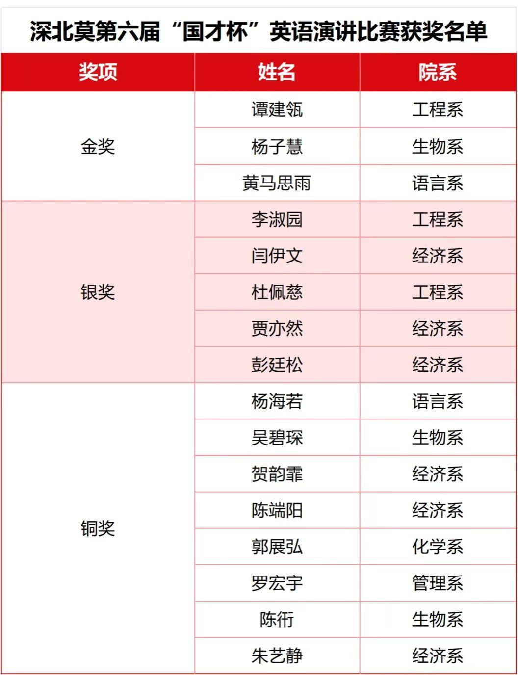 本次英語演講比賽為深北莫第三屆知識(shí)科學(xué)文化節(jié)活動(dòng)之一。英語中心將繼續(xù)深耕教學(xué),致力于培養(yǎng)具備家國情懷、全球視野和專業(yè)本領(lǐng)的新時(shí)代英才,為國家戰(zhàn)略服務(wù),在深化文明交流互鑒、構(gòu)建人類命運(yùn)共同體的征程中貢獻(xiàn)力量。期待在即將到來的省賽中,深北莫學(xué)子能夠再創(chuàng)佳績、實(shí)現(xiàn)新的突破。