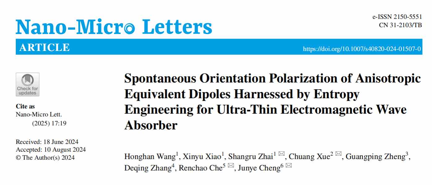 在題為“Spontaneous Orientation Polarization of Anisotropic Equivalent Dipoles Harnessed by Entropy Engineering for Ultr-Thin Electromagnetic Wave Absorber”(DOI:10.1007/s40820-024-01507-0)的研究工作中,研究團(tuán)隊(duì)通過(guò)碳熱沖擊方法合成了碳支架/納米尺度高熵合金(HEAs)電磁響應(yīng)復(fù)合材料,以實(shí)現(xiàn)導(dǎo)電和介電特性的協(xié)同競(jìng)爭(zhēng)工程。研究揭示了HEAs中電子遷移模式受到元素電負(fù)性、價(jià)電子配置和元素摩爾比例的影響,這些因素決定了等效偶極子的穩(wěn)態(tài)和效率。受到皮膚效應(yīng)的啟發(fā),采用碳化纖維素紙(CCP)作為碳支架,改進(jìn)了碳熱沖擊方法,以保留碳化纖維素纖維(CCF)中的含氧功能團(tuán)(O·)。HEAs的成核和典型的殼-核結(jié)構(gòu)CCF/HEAs異質(zhì)界面的構(gòu)建與O·引起的碳代謝密切相關(guān)。同時(shí),可切換的富電子位點(diǎn)電子遷移模式促進(jìn)了各向異性等效偶極子的取向極化。通過(guò)這種強(qiáng)化策略,制備出的CCP/HEAs復(fù)合物展現(xiàn)出在1.03mm的超薄匹配厚度下-51.35dB的高效電磁波吸收。研究通過(guò)將理論計(jì)算、實(shí)驗(yàn)表征和電磁仿真模擬技術(shù)相結(jié)合,闡明了基于CCP/HEAs電磁波吸收體系的電磁衰減機(jī)制,為電磁功能器件(如超寬帶帶通濾波器)的實(shí)際應(yīng)用提供了理論基礎(chǔ)和可行性策略。