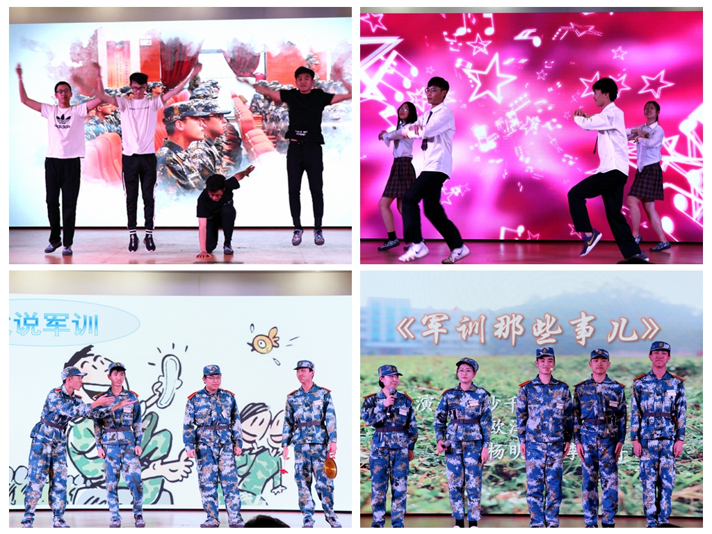 晚會分為三個篇章進行:青春啟航、軍營暢想、筑夢未來。一曲激情洋溢的《軍旅·青春·夢想》配合軍訓花絮剪影,拉開了晚會的序幕,現(xiàn)場氣氛歡快而熱烈。隨后,精彩絕倫、動感精湛的舞蹈節(jié)目《致青春》,體現(xiàn)出我校學子的青春活力;別出心裁的歌曲類節(jié)目《青春之歌》,深情悠揚,在場觀眾聽得如癡如醉;三句半《戲說軍訓》及幽默舞臺劇《軍訓那些事兒》詼諧地展現(xiàn)了陽光活潑的軍營生活,讓全體教官、指導員、學員在笑聲中回味了軍訓生活的點滴精彩。
