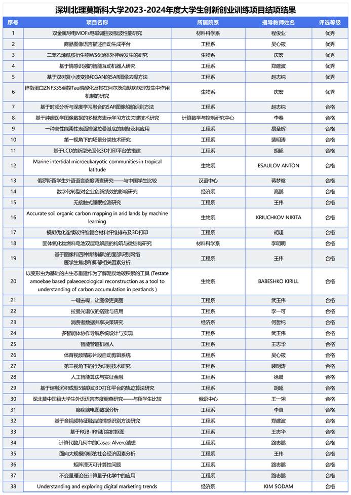 根據《關于2023-2024年度大學生創新創業訓練計劃項目結項的通知》的相關要求,學生工作部于2024年4月20日組織開展了大學生創新創業訓練計劃項目結項答辯會。經各隊伍答辯、專家組評審,現將2023-2024學年大學生創新創業訓練計劃項目評審結果公示如下: