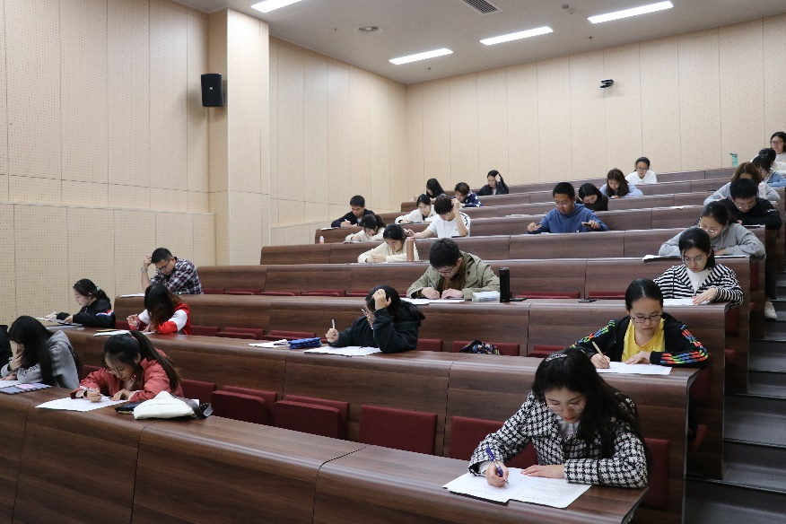經(jīng)過前期宣傳報名,3月8日20點, 30余名學(xué)生在1教113參加校內(nèi)選拔賽。經(jīng)過緊張的筆試,盧思米、石宴寧、董振亞、劉世健四名學(xué)生推薦進(jìn)入省賽。3月14日16點,以上四名學(xué)生在主樓281參加由廣東省教育廳主辦的線上比賽。