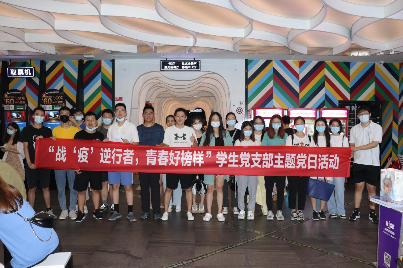 為深入引導(dǎo)青年學(xué)生繼續(xù)向榜樣學(xué)習(xí),發(fā)揚(yáng)偉大抗疫精神,7月11日下午16點(diǎn),學(xué)生黨支部開(kāi)展了“戰(zhàn)‘疫’逆行者,青春好榜樣”主題黨日活動(dòng)。學(xué)生黨支部成員及部分入黨積極分子們一起走進(jìn)電影院,觀看抗疫電影《中國(guó)醫(yī)生》。