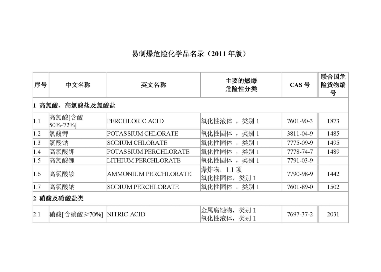 易制爆危險化學品名錄(2011年版)(公安部2011年11月公告)
