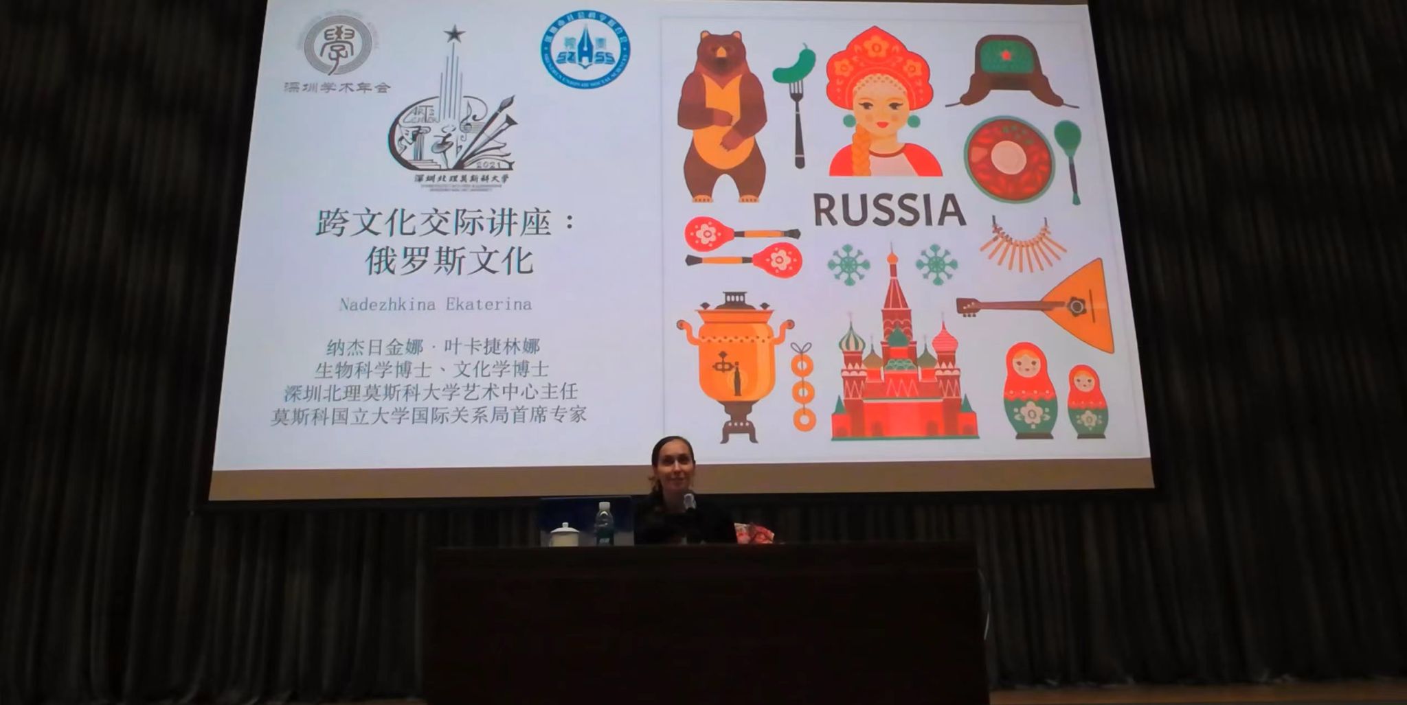 11月2日,深圳北理莫斯科大學藝術中心攜手深圳市南山博物館,舉辦了一場別開生面的俄羅斯文化講座。講座為深圳市學術年會的子項目,眾多高校、企業外事相關人員共同參與了這場學術盛會并交流了感想。本次講座由深北莫藝術中心主任、生物科學博士及文化學博士納杰日金娜·葉卡捷林娜(Nadezhkina Ekaterina)主講,她憑借其深厚的學術底蘊和獨特的視角,吸引了眾多對俄羅斯文化感興趣的師生及社會各界人士前來聆聽。