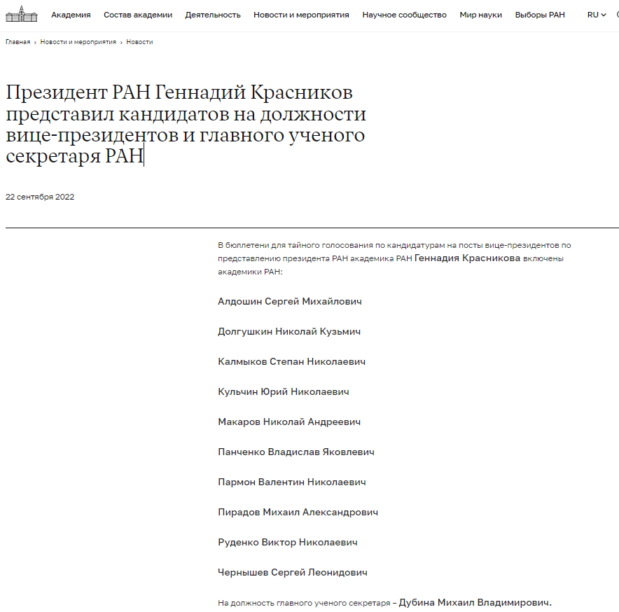 日前,俄羅斯科學院全體大會舉行新一屆主席團成員選舉。根納季·雅科夫列維奇·克拉斯尼科夫院士在21日的選舉中勝出,出任俄羅斯科學院新院長,并隨后開啟副院長選舉議程。經過無記名投票,斯捷潘·尼古拉耶維奇·卡爾梅科夫從10位候選人中勝出,擔任俄羅斯科學院副院長。