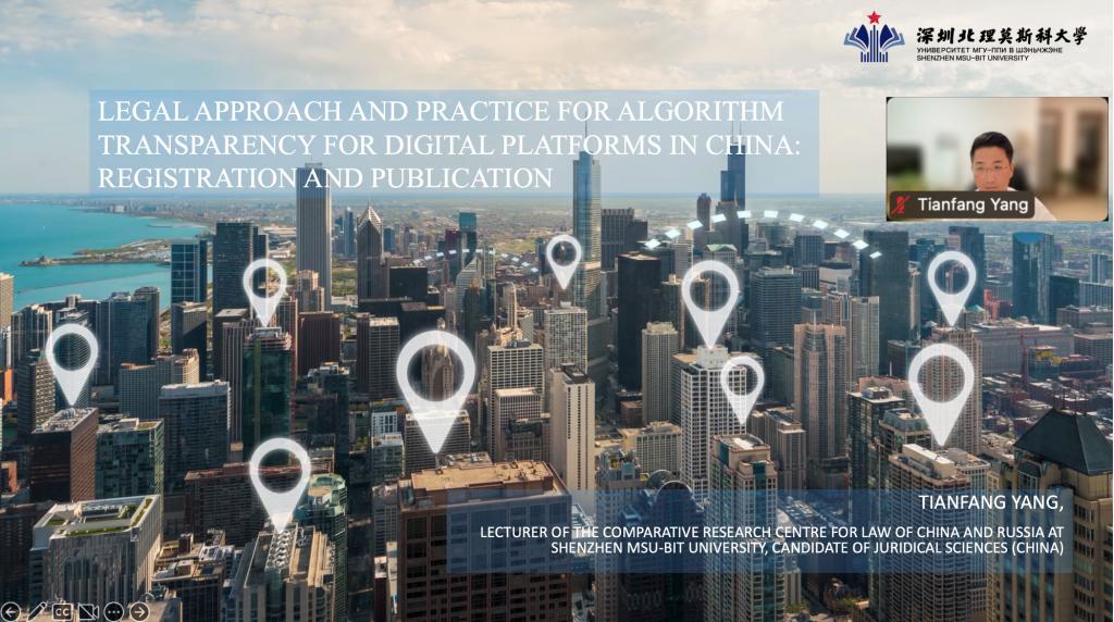 深北莫中俄法學比較研究中心講師楊天放老師對我國實現算法透明的規制路徑進行了詳細介紹,并就立法及實踐完善問題提出了可行性建議。