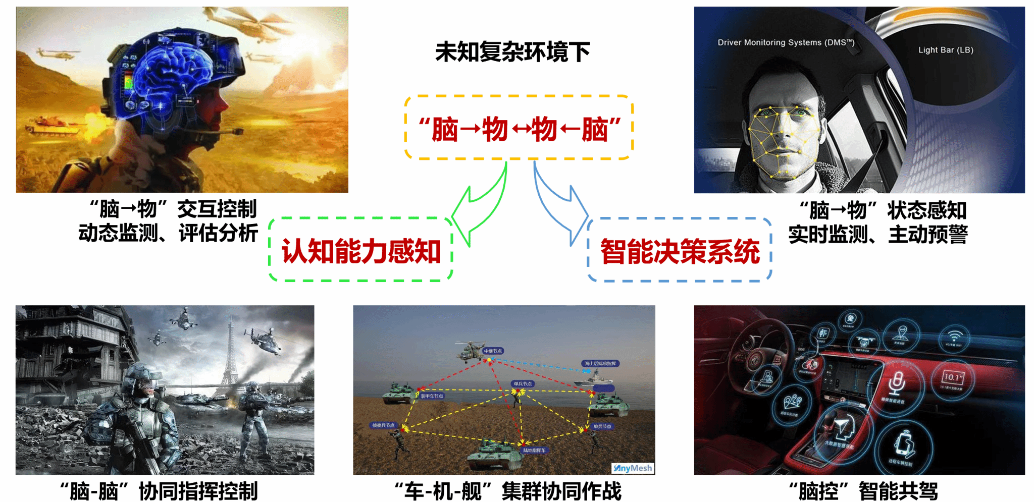 新一代人工智能發展的一大顯著特色是人腦與人工智能體的交叉融合。 2017 年國務院印發的《新一代人工智能發展規劃》中就將“腦機協同的混合增強智能”作為我國未來人工智能研究和發展的一個重要方向。通過有機融合人腦智能與人工智能,形成兩種智能的協作和優勢互補,打造“腦"物1 物!腦”協同的認知能力感知和智能決策系統,建立“腦物融合”的增強智能形態,將進一步提升人類在未知復雜工況下執行高負荷任務的能力和水平。