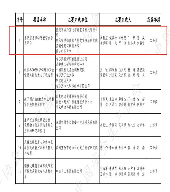 安全科技進步獎是由應急管理部指導、國家科學技術獎勵工作辦公室批準成立、中國安全生產協會組織實施的省部級獎項,旨在更好地貫徹落實安全發展理念,實施“科技興安”戰略,推進安全生產科技創新,是中國安全生產領域最高科技獎項。主要獎勵在安全生產領域中為基礎理論和管理方法研究、技術標準制定、科學技術發明、科技成果研發和轉化、設施設備技術改造和創新等工作中做出突出貢獻的單位和個人。本次經形式審查、初評網評和會審、項目公示、現場答辯、評審委員會終評等程序,共評選出第五屆安全科學技術獎686項,其中“科技成就獎”4項;“科技創新獎”16項;“技術發明獎”一等獎3項,二等獎9項,三等獎11項;“科技進步獎”一等獎78項,二等獎235項,三等獎330項。