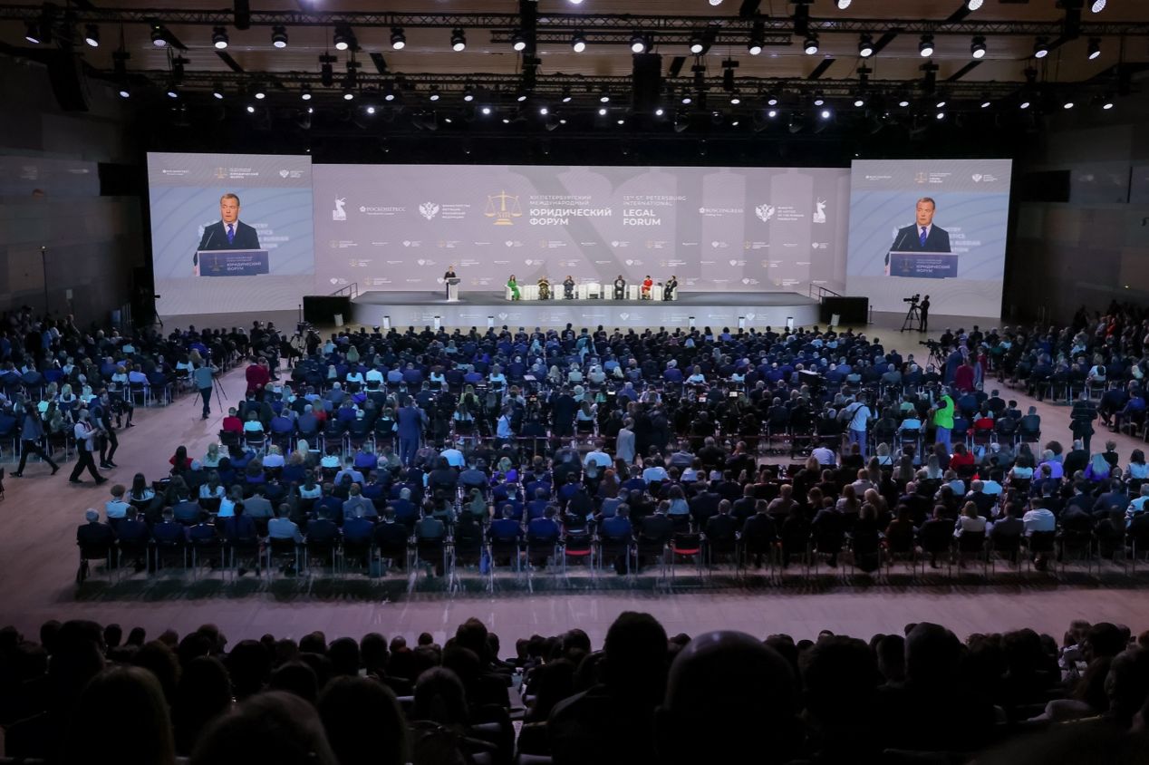 論壇由俄羅斯聯(lián)邦司法部和俄羅斯會展基金會共同主辦,是俄羅斯最具影響力的國際大型法律論壇之一。本屆論壇主題為“法律:過去的經(jīng)驗對未來世界的啟示”,共有來自67個國家的與會代表參加,多個國家政府首腦及司法部官員出席。俄羅斯總統(tǒng)普京向論壇與會者和嘉賓致辭,俄羅斯聯(lián)邦前總統(tǒng)、現(xiàn)安全會議副主席梅德韋杰夫出席會議并做主旨發(fā)言。