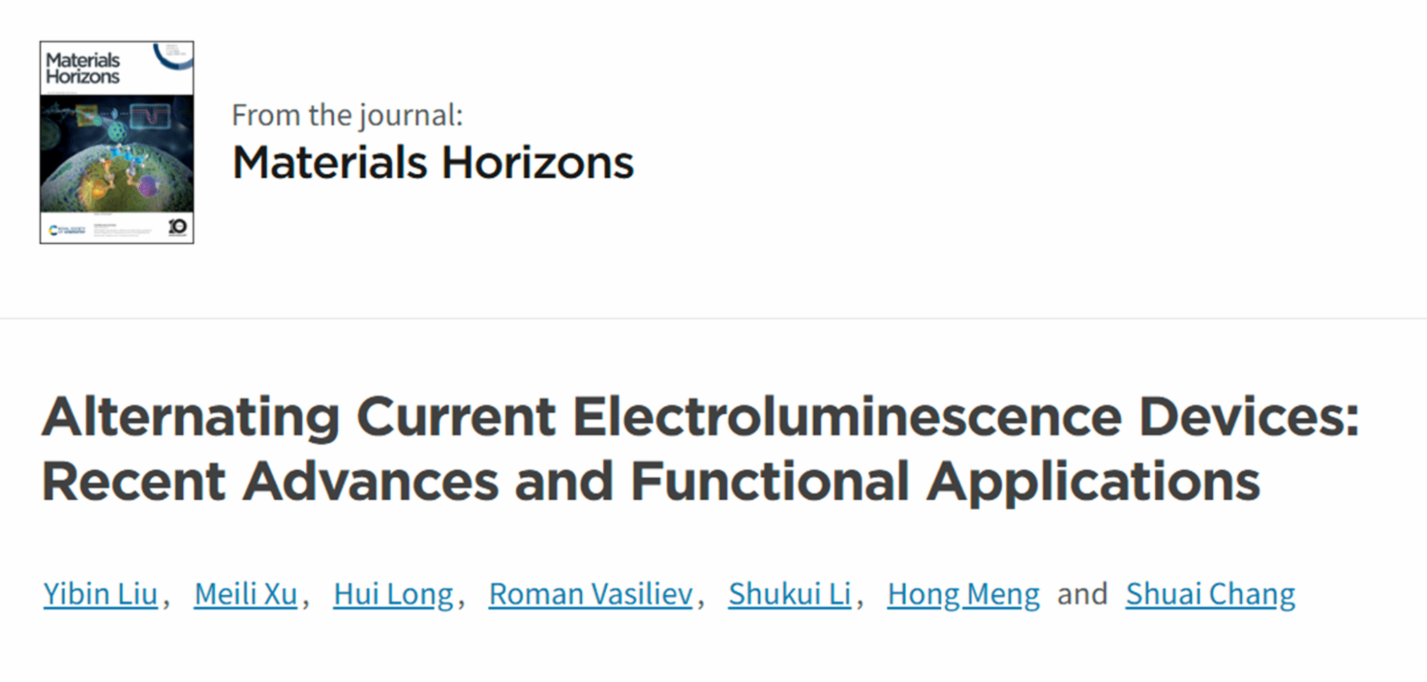 近日,深圳北理莫斯科大學材料科學系常帥教授研究團隊及其合作者在《Materials Horizons》期刊發表題為“Alternating Current Electroluminescence Devices: Recent Advances and Functional Applications(交流驅動電致發光器件:最新進展與功能應用)”的綜述論文。《Materials Horizons》2024年最新影響因子為12.2,是材料、化學與工程領域公認的頂尖期刊。