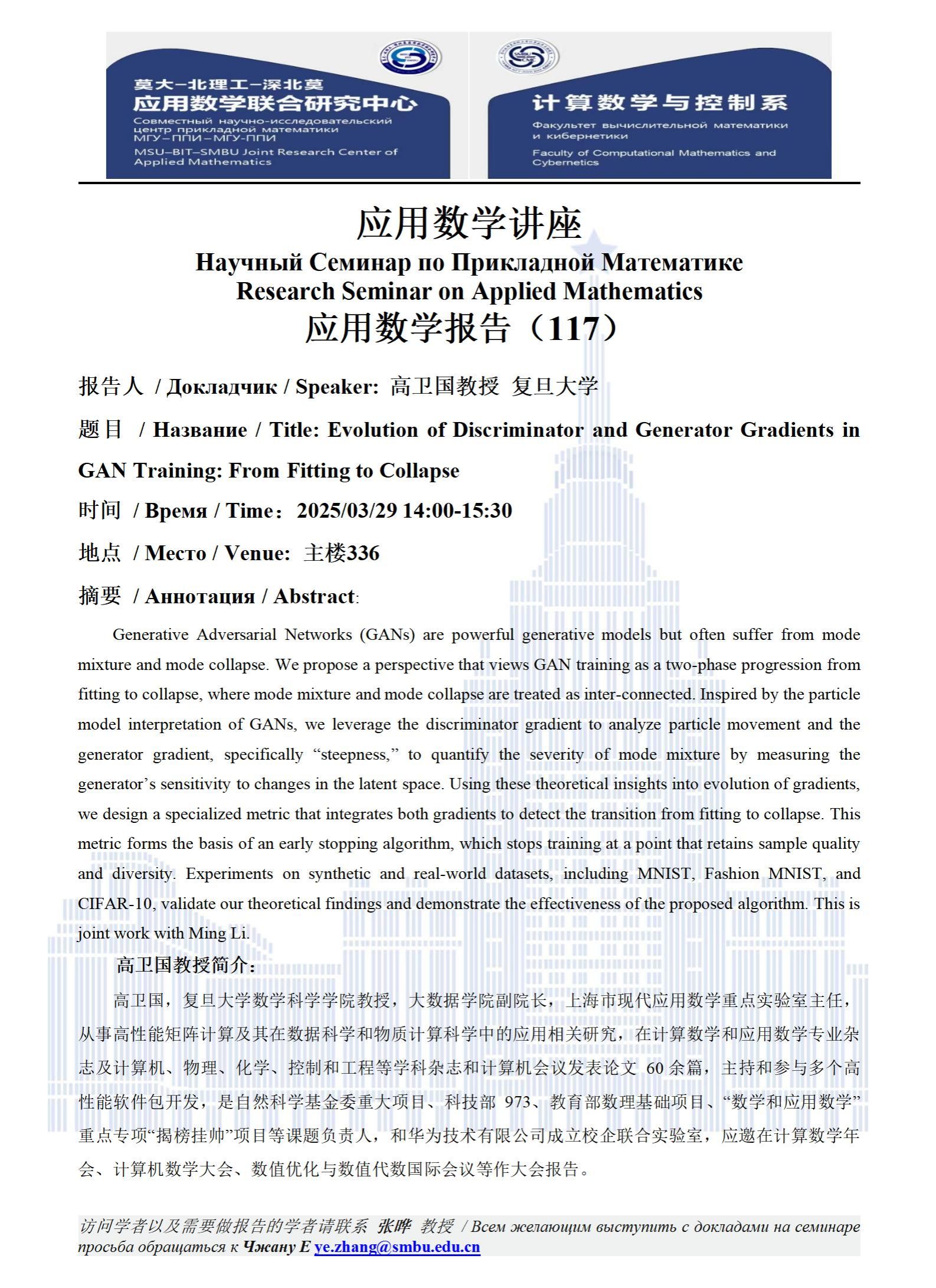 【講座預告】應用數學講座——應用數學報告(117)(118)