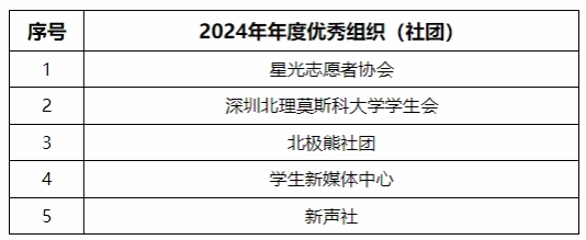 根據《關于做好2024年度學生評優工作的通知》的規定,經過學生自主申請、院系評選推薦及公示、學生工作部審核、校內答辯評選,擬授予星光志愿者協會等5個社團組織“優秀組織(社團)”榮譽稱號。