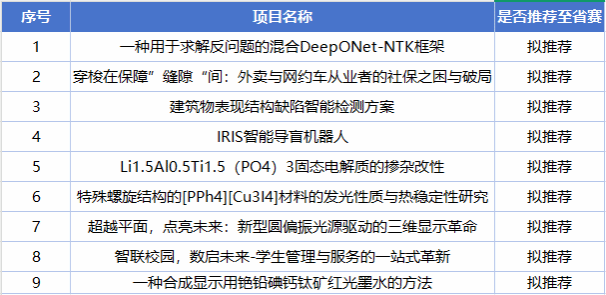 根據(jù)廣東省第十八屆“挑戰(zhàn)杯”全國大學(xué)生課外學(xué)術(shù)科技作品競賽的通知要求,經(jīng)學(xué)生自主申報、院系推薦、專家評審等程序,我校擬推薦以下項目參加第十八屆“挑戰(zhàn)杯”廣東省大學(xué)生課外學(xué)術(shù)科技作品競賽。現(xiàn)對推選結(jié)果予以公示,具體如下: