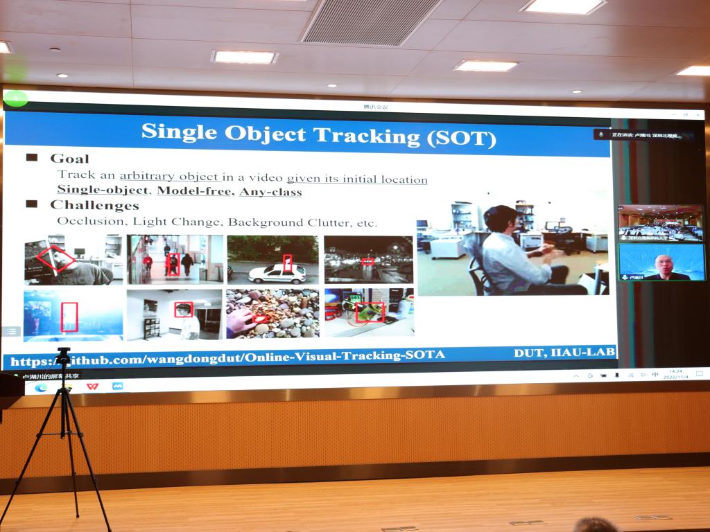 來自大連理工大學的盧湖川教授首先代表中國圖象圖形學會向深圳北理莫斯科大學承辦此次活動表示了感謝,并對學會的發展進行了全面的介紹。隨后,他在此次會議上作了題目為“一網通吃:跟蹤與分割大一統”的報告。報告指出:通用人工智能(AGI)實現1個網絡完成多個不同的任務,可以更好的挖掘模型特性、泛化能力,是未來發展趨勢。該報告介紹了其團隊圍繞多任務通用視覺模型Unicorn,實現的單目標跟蹤(SOT)與分割(VOS),多目標跟蹤(MOT)與分割(MOTS)四個任務的大一統。