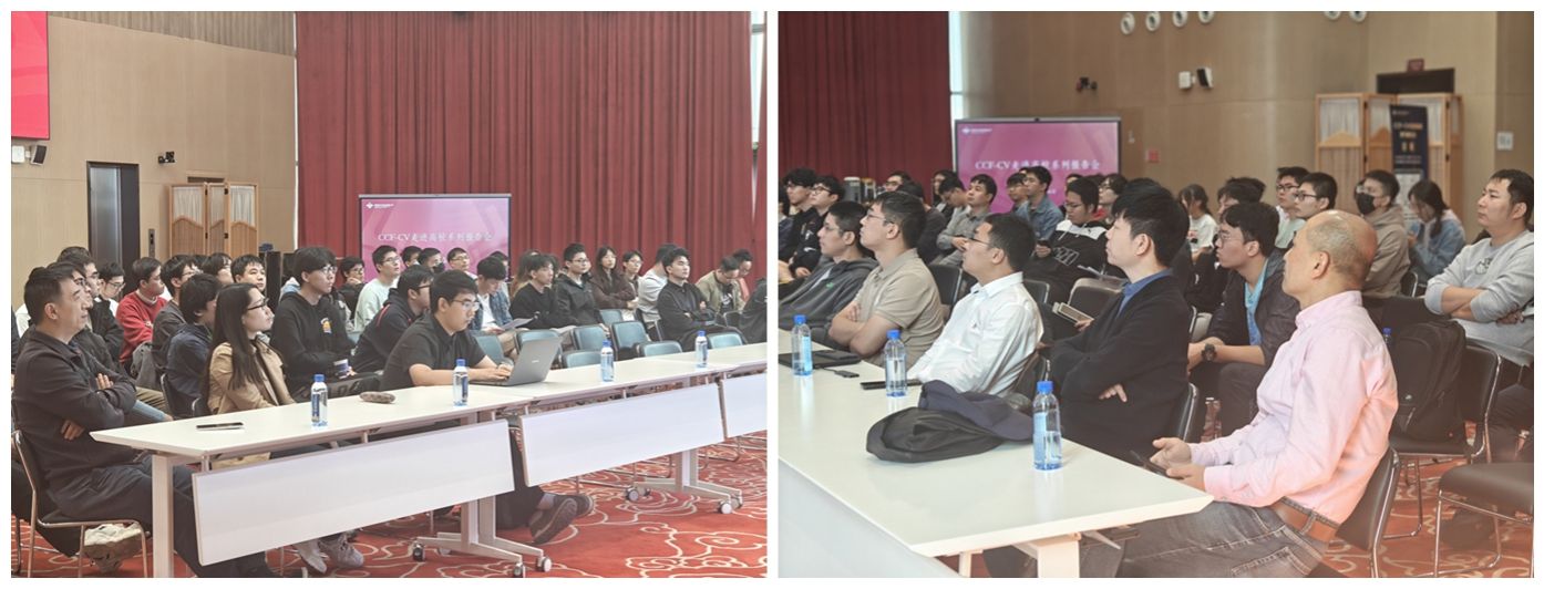 本期CCF-CV走進高校系列報告會,從噪聲關聯學習、深度概率模型到高效目標跟蹤與分割、低質圖像恢復,報告覆蓋了智能感知與計算的多個方面,前沿理論與實踐應用緊密結合。4位講者與師生互動,共同探討、交流,并對師生提出的問題做出詳盡的回答,使大家獲得了許多有價值的學術見解,會議氛圍熱烈。此次報告會極大地激發了師生們的科研熱情,為師生們提供了一次難得的學習機會。最后,報告會在熱烈的掌聲中圓滿結束。