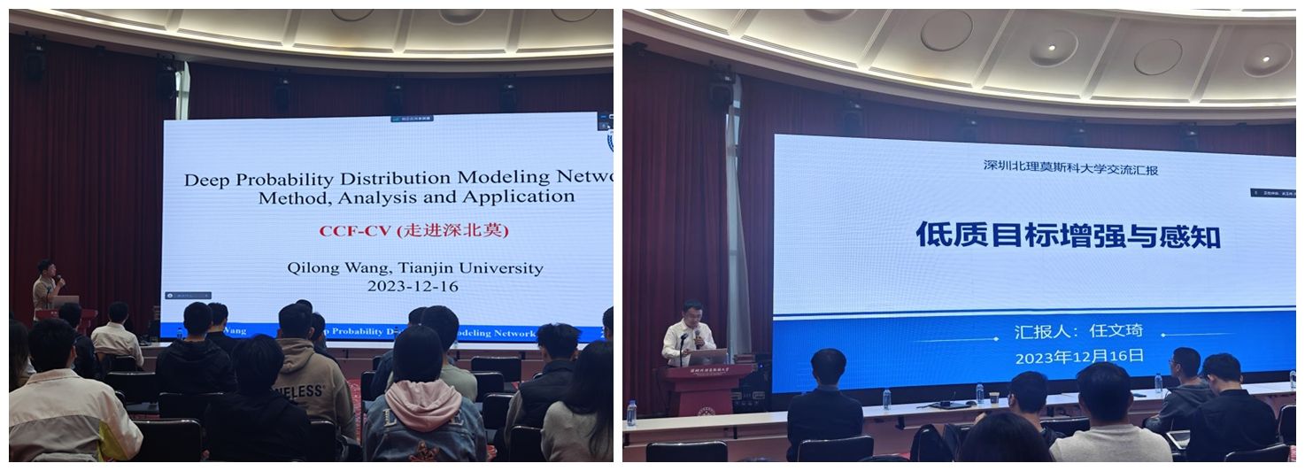 2023年12月16日,由中國計算機學會計算機視覺專委會(CCF-CV)主辦,深圳北理莫斯科大學(以下簡稱“深北莫大學”)、廣東省智能感知與計算重點實驗室聯合承辦的第135期CCF-CV走進高校系列報告會——“智能感知與計算”,在深北莫大學圖書館國際中心舉行。本期報告會邀請了四川大學彭璽教授、大連理工大學王棟教授、中山大學任文琦教授、天津大學王旗龍教授四位專家學者做特邀報告。來自深北莫大學、北京理工大學、南方科技大學、香港中文大學(深圳)和中山大學等高校的師生們聆聽了4位專家的精彩報告。